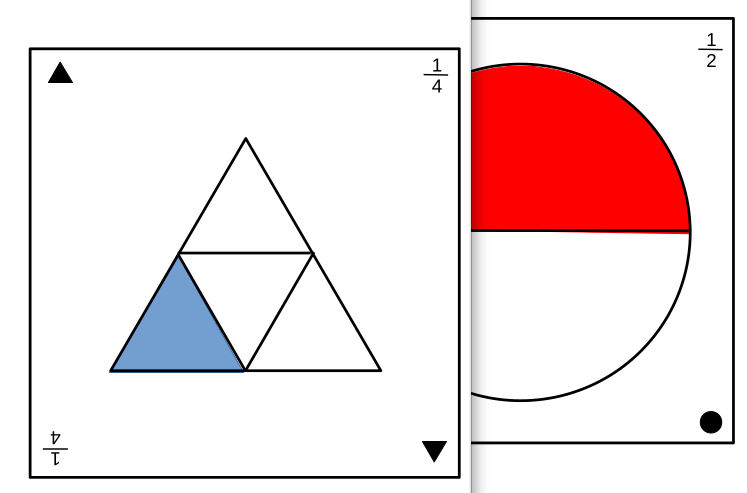 Un petit jeu de cartes à imprimer pour utiliser le vocabulaire des fractions, réactiver les notions, familiariser les élèves aux différents découpages équivalents en terme d’aire…