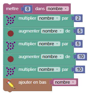 on peut bouger le nombre à gauche (pour l’instant 8) afin d’émettre des conjectures sur ce programme de calcul.