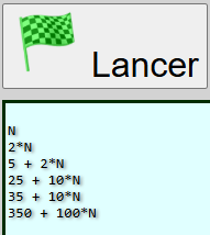 Le clic sur le drapeau vert affiche alors les valeurs littérales des expressions algébriques successives :