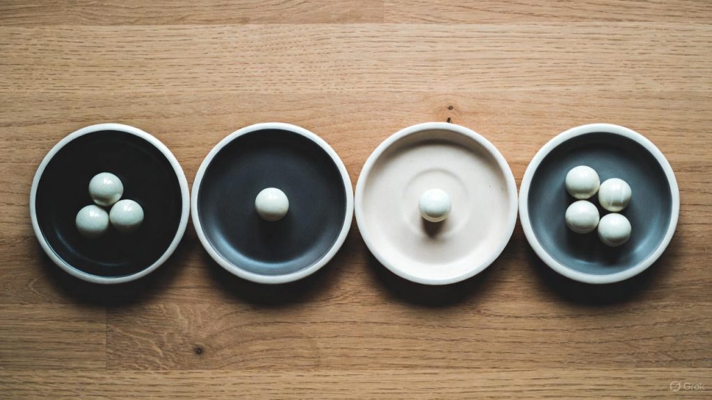 Ce matériel (billes dans des soucoupes ou des barquettes) est d’ailleurs intéressant pour d’autres activités sur les nombres (construction du nombre en CP, ou fractions en CE).