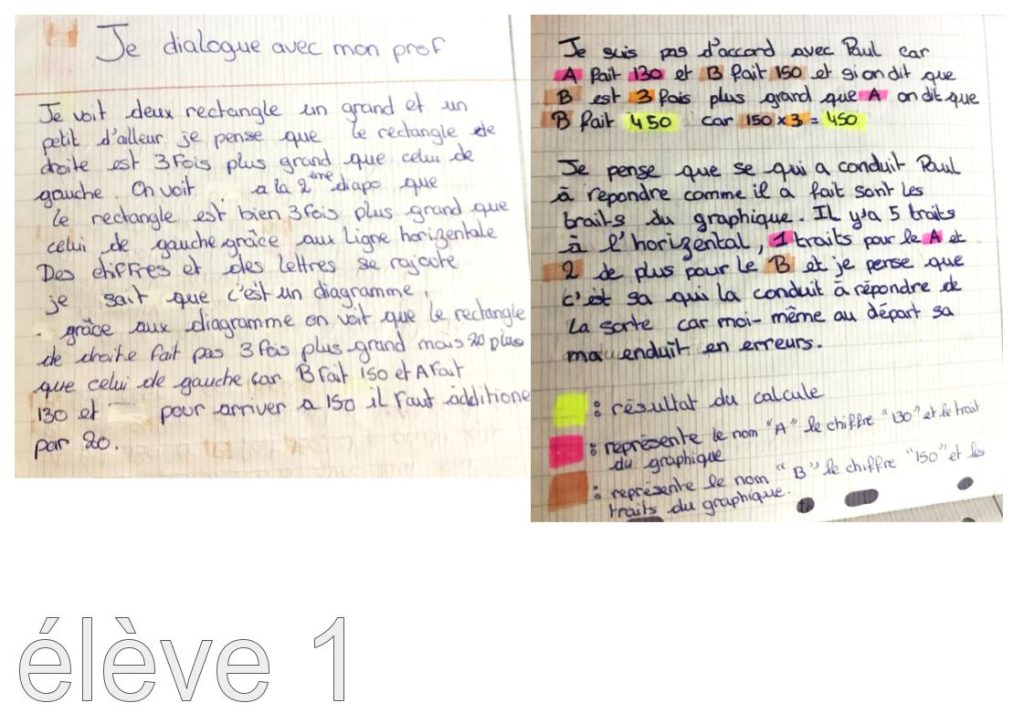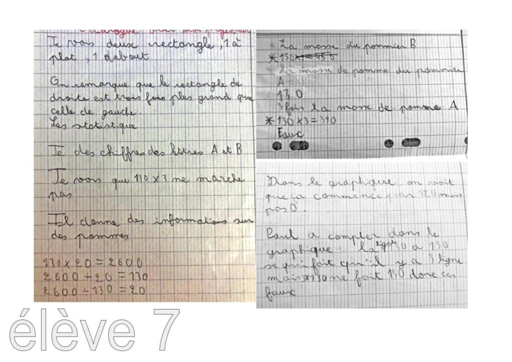 Les élèves les plus à l’aise ne donnent pas directement la réponse : leur travail finalisé permet de retrouver et d’expliciter leur cheminement, leur raisonnement, leurs idées.